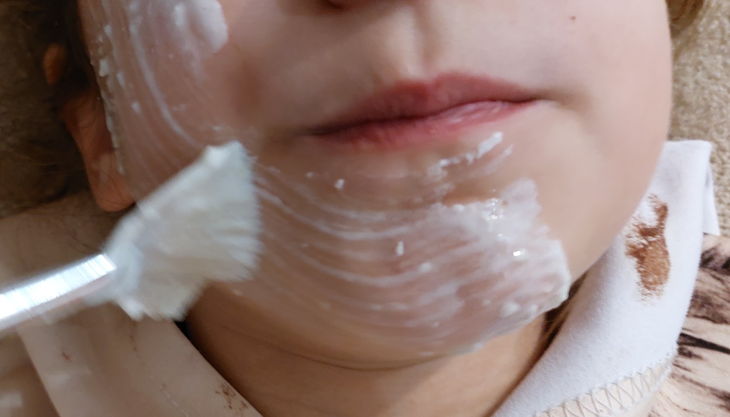 Jeder bekommt einen Pinsel für das Auftragen der Maske, bzw. Peelings. Auf Liegestühle wird gegenseitig alles ausprobiert. Mit einem Abschminktuch wird nach der Einwirkzeit alles abgewaschen.