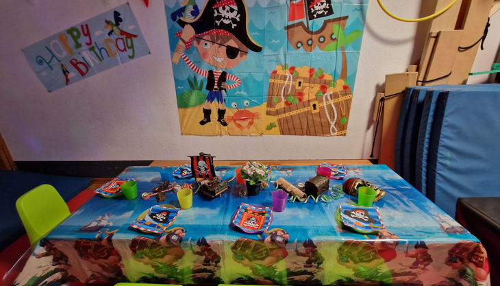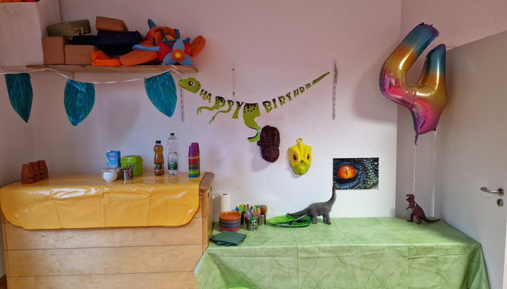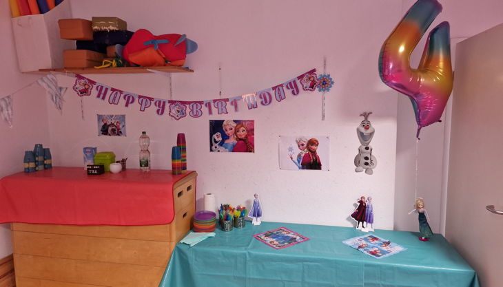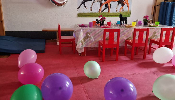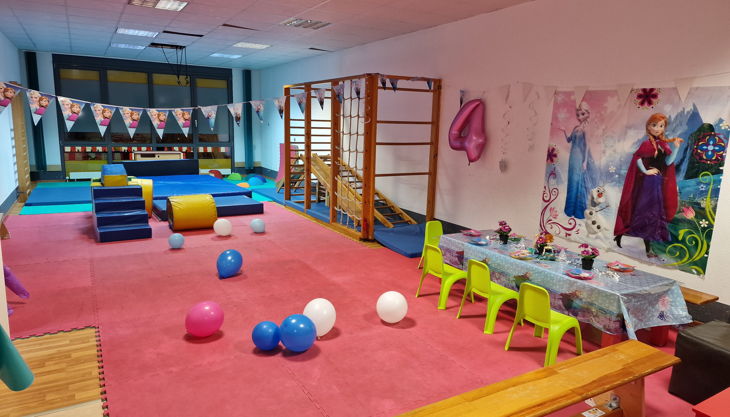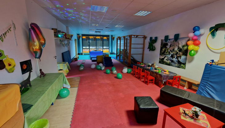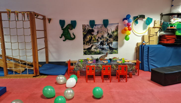Die Großen (3 - 6 J.) können sich in unserem Sport- und Partyraum so richtig austoben. Egal ob Prinzessin, Pirat oder Ritter, Elfe, Dino, Hexe, Wilde Tiere oder Meerjungfrau - hier werden alle Träume wahr. Unser Sportraum wird zur passenden Kulisse für Eure Geburtstagsfeier.