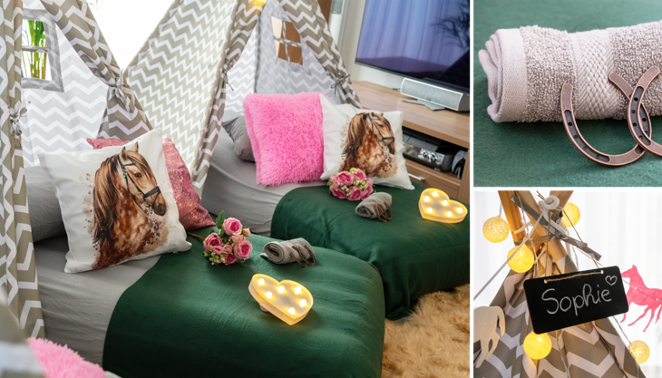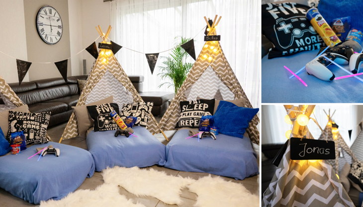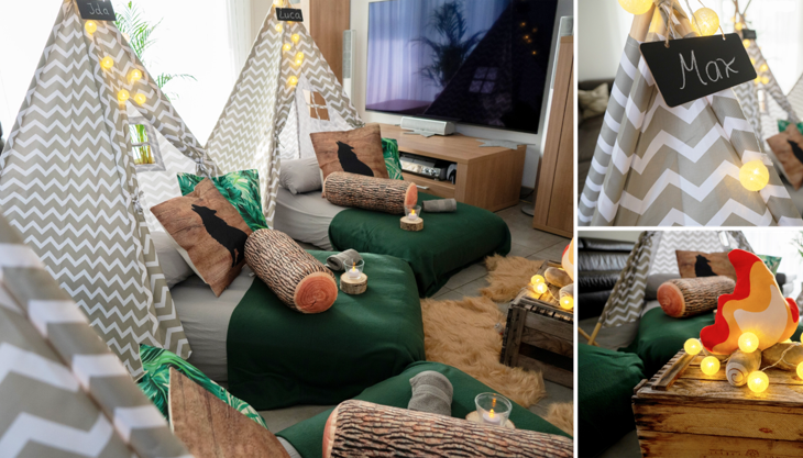 Bei uns kannst du speziell auf die Übernachtungsparty zuhause abgestimmte Schlaf-Sets mieten. Mit unseren Rundum-sorglos-Paketen – bestehend aus je einem Tipi-Zelt, Luftbett, Kissen, Decke, Beleuchtung und zum Party-Thema passenden Accessoires – verwandelst du dein Zuhause im Nu in ein kleines Zeltlager und schaffst ein gemütliches und einladendes Ambiente.